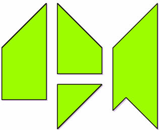 Xin giới thiệu với các bạn một bài toán nổi tiếng đầu thế kỷ 20. Từ hình tam giác đã cắt góc trên, người ta chia thành các mảnh nhỏ như hình bên dưới. Nhiệm vụ của bạn là ghép các mảnh nhỏ này lại thành hình chữ T (T hoa). Bạn hãy tìm ra càng nhiều cách ghép càng tốt.